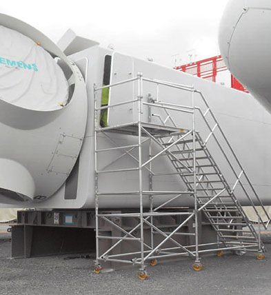 Standard Level STAIRWAY 斜梯组件 Instant Stairway 塔是一个多功能组件,能够轻松地将一座标准的 Span300 和一座 Span 400 移动脚手架塔的转化为一个楼梯塔。每 2 米就有安全着陆点,使用了标准的护栏、支撑框架和平台板,无需特殊的保护措施。 Stairway 的梯级有 144 毫米深,宽度为 450 毫米,使之更易于携带工具。梯级的上升幅度为 230 毫米,倾斜角度为 51 度。 Instant Upright 10 年质保。 符合 EN1004 和高空作业指令。负载 3 级。